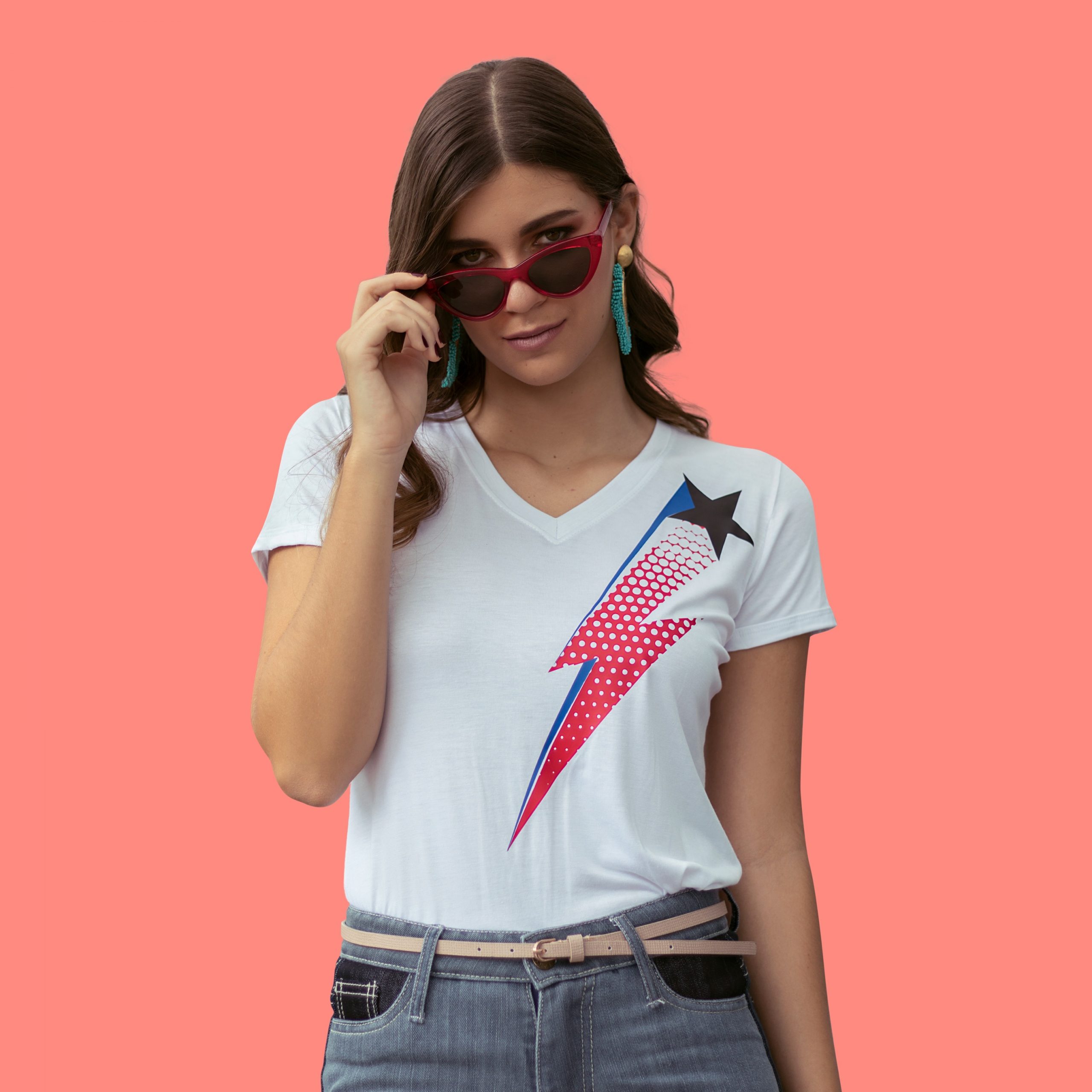 $25.00 Camiseta de viscosa y spandex, con mangas y cuello en V con diseno en vinil textil. color Elige una opciónLavandaRojoVerdeAzulBlancoGrisMostazaNegroRosado Tallas Elige una opciónXSSMLXLXSSMLXLLimpiar BOWIE STAR cantidad Añadir al carrito SKU: C-PO3-005 Categorías: Graphic T-Shirts, PARTY OF 3 Productos relacionados Graphic T-Shirts/PARTY OF 3TURQUOISE SKULL $25.00 Seleccionar opciones Este producto tiene múltiples variantes. Las opciones se pueden elegir en la página de producto PARTY OF 3LIPS & PILL $25.00 Seleccionar opciones Este producto tiene múltiples variantes. Las opciones se pueden elegir en la página de producto Graphic T-Shirts/PARTY OF 3CRAZY BUNNY $25.00 Seleccionar opciones Este producto tiene múltiples variantes. Las opciones se pueden elegir en la página de producto