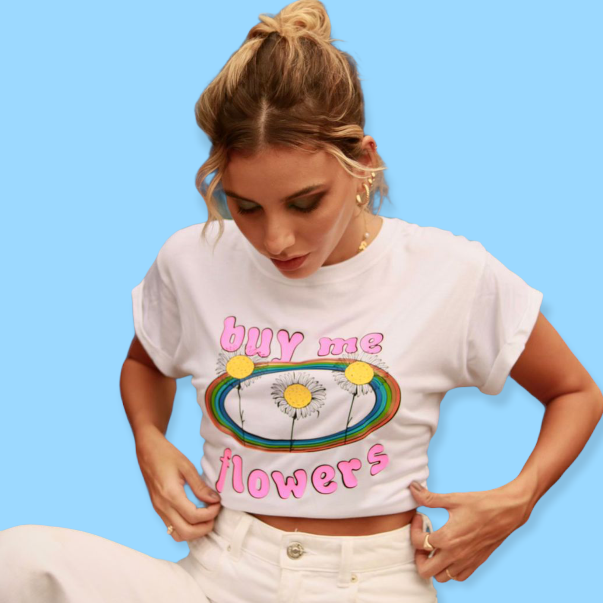 $25.00 Camiseta de viscosa y spandex con cuello redondo y mangas remangadas con diseno de vinil textil. color Elige una opciónLavandaRojoVerdeAzulBlancoGrisMostazaNegroRosado Tallas Elige una opciónXSSMLXLXSSMLXLLimpiar BUY ME FLOWERS cantidad Añadir al carrito SKU: C-TRS-015 Categorías: Graphic T-Shirts, TRENDY STREET Productos relacionados Graphic T-Shirts/INTO THE WILDANIMAL PRINT HEART $28.00 Seleccionar opciones Este producto tiene múltiples variantes. Las opciones se pueden elegir en la página de producto Mejor Vendedor Graphic T-Shirts/INTO THE WILDCHEETAH FACE $28.00 Seleccionar opciones Este producto tiene múltiples variantes. Las opciones se pueden elegir en la página de producto SHADES OF BLUE/Graphic T-ShirtsMOON & FLOWERS $25.00 Seleccionar opciones Este producto tiene múltiples variantes. Las opciones se pueden elegir en la página de producto