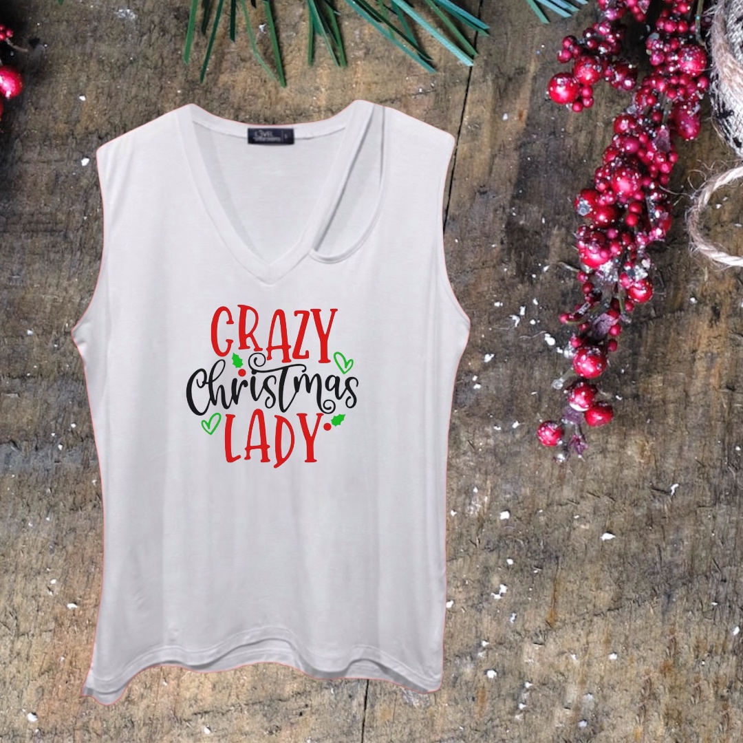 Camiseta de viscosa y spandex, sin mangas, cuello en V, con diseño de vinil textil.