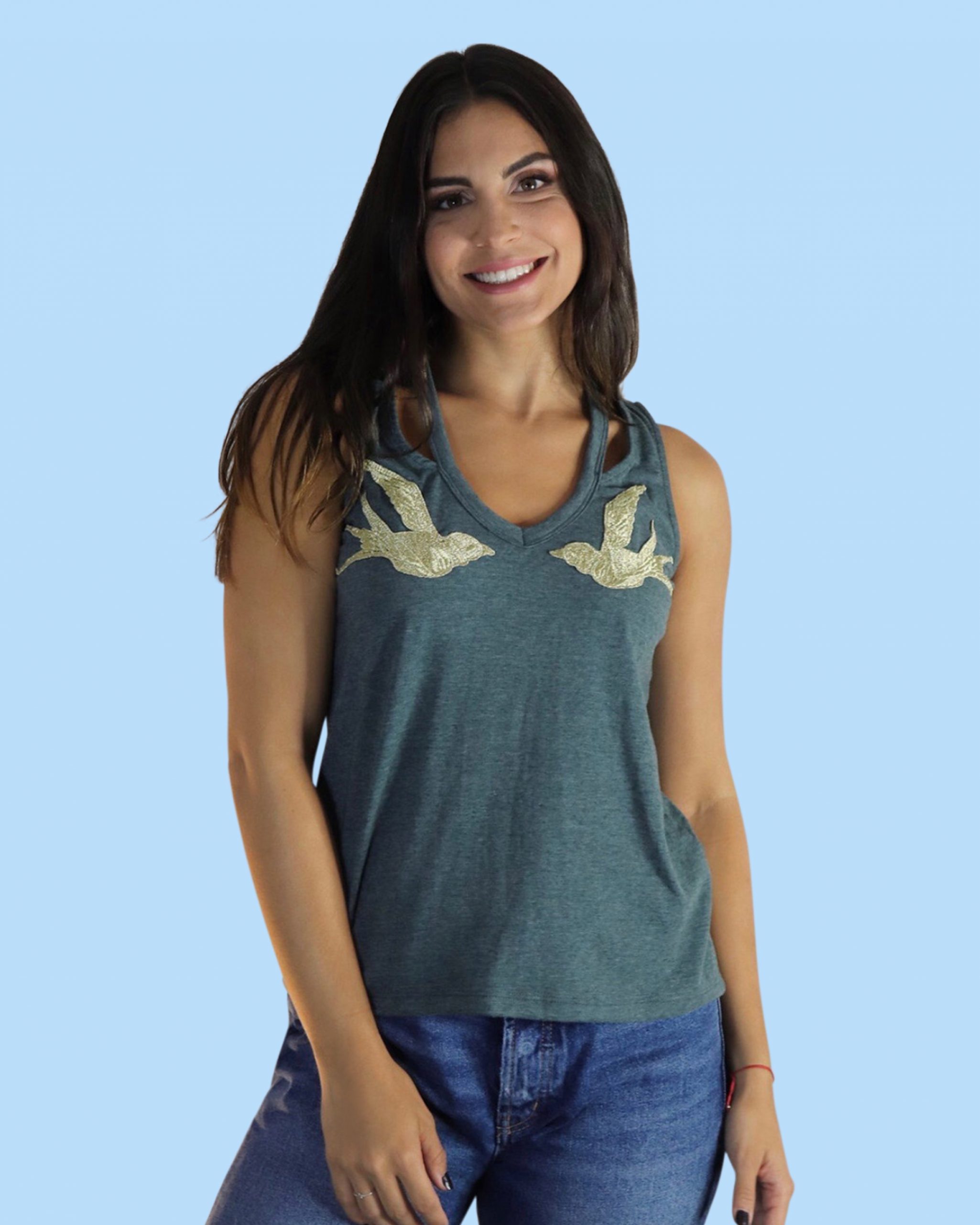 $28.00 Camiseta de viscosa y spandex, sin mangas cuello en V, con dos tiras a los lados, y dos parches dorados. color Elige una opciónLavandaRojoVerdeAzulBlancoGrisMostazaNegroRosado Tallas Elige una opciónXSSMLXLXSSMLXLLimpiar GOLD BIRDS cantidad Añadir al carrito SKU: C-TPN-011 Categorías: Patches & Appliques, THE PICNIC Productos relacionados Patches & Appliques/THE PICNICSTORKS EMBROIDERED $28.00 Seleccionar opciones Este producto tiene múltiples variantes. Las opciones se pueden elegir en la página de producto Graphic T-Shirts/THE PICNICREVOLUTION $25.00 Seleccionar opciones Este producto tiene múltiples variantes. Las opciones se pueden elegir en la página de producto Mejor Vendedor Patches & Appliques/THE PICNICEYES RHINESTONES $28.00 Seleccionar opciones Este producto tiene múltiples variantes. Las opciones se pueden elegir en la página de producto