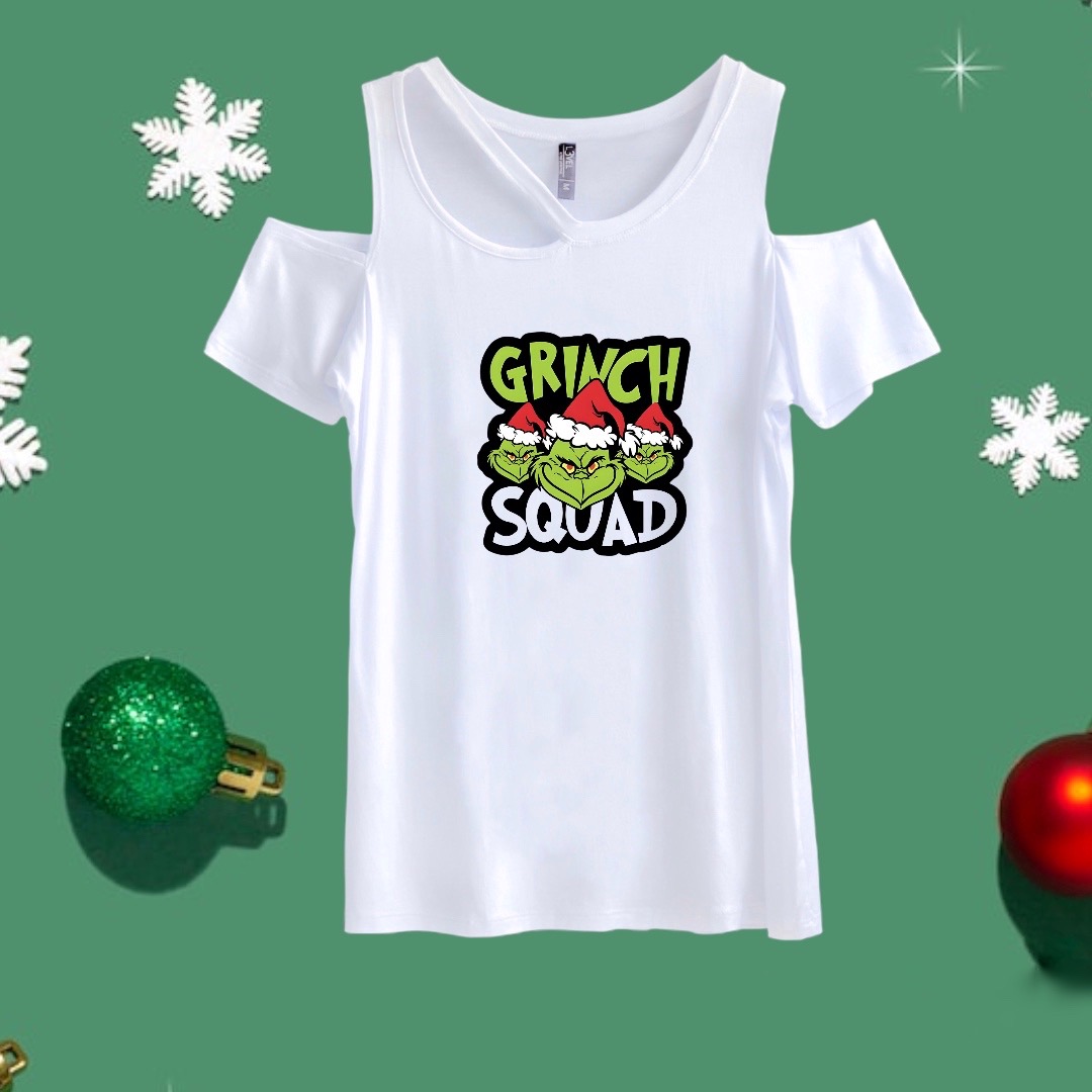 Camiseta de viscosa y spandex, con mangas off shoulders, con diseño de vinil textil.