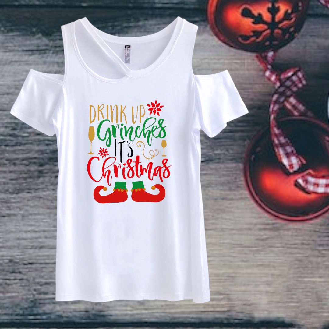Camiseta de viscosa y spandex, con mangas off shoulders, con diseño de vinil textil.