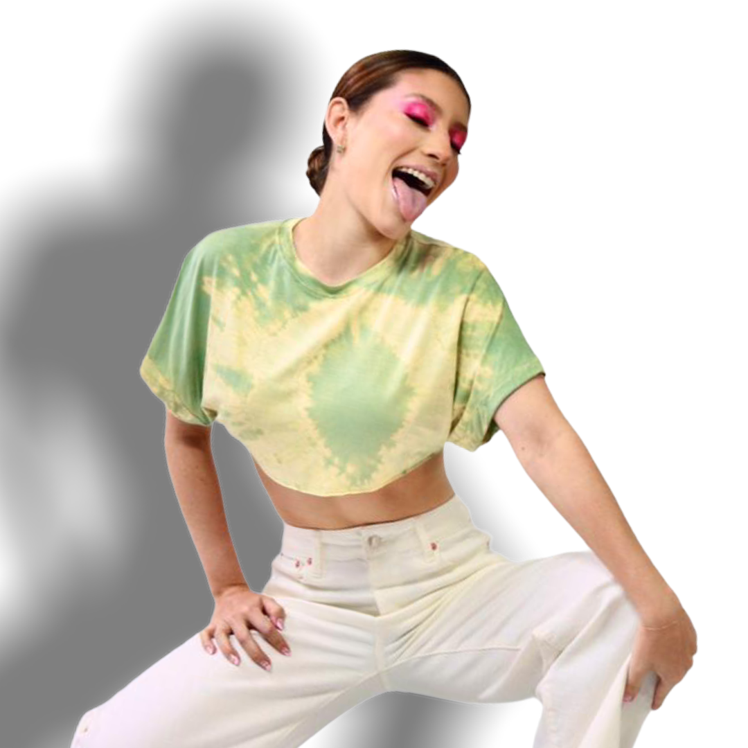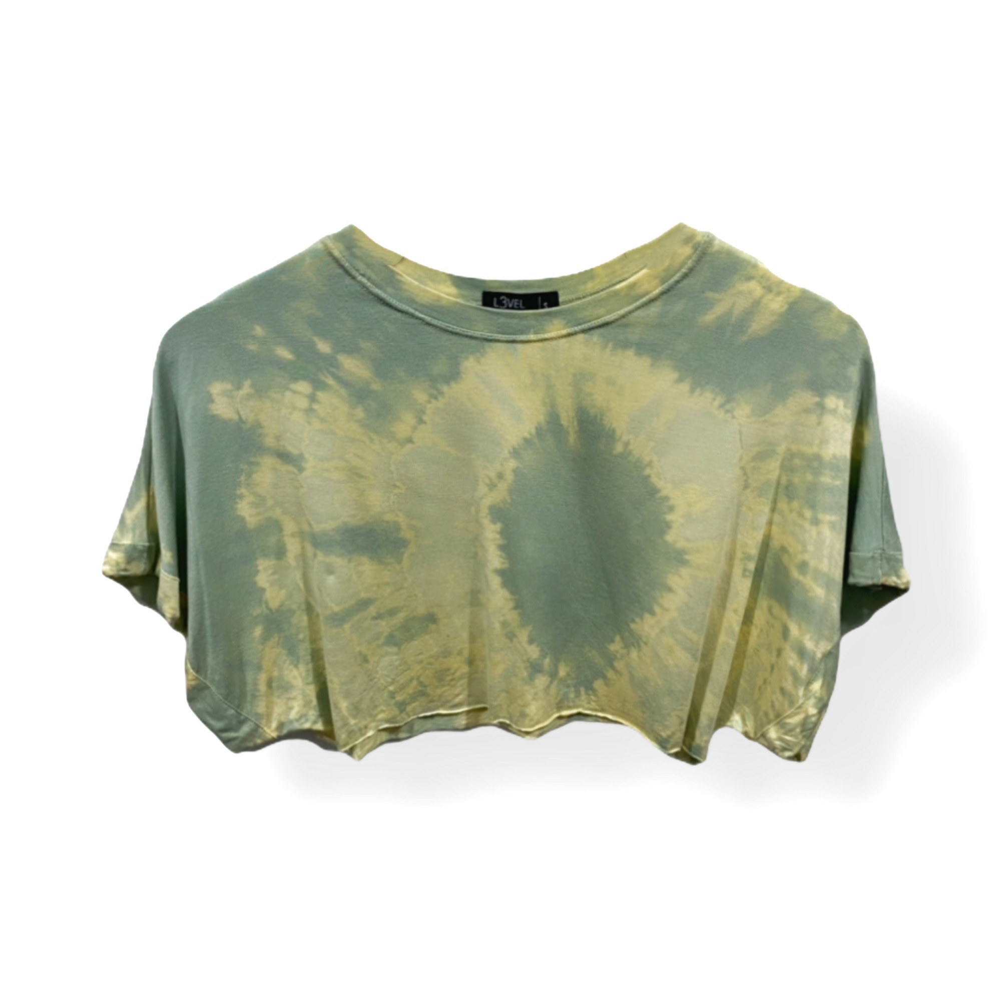 Crop Top ancho de viscosa y spandex con aplicación de técnica Tie Dye.