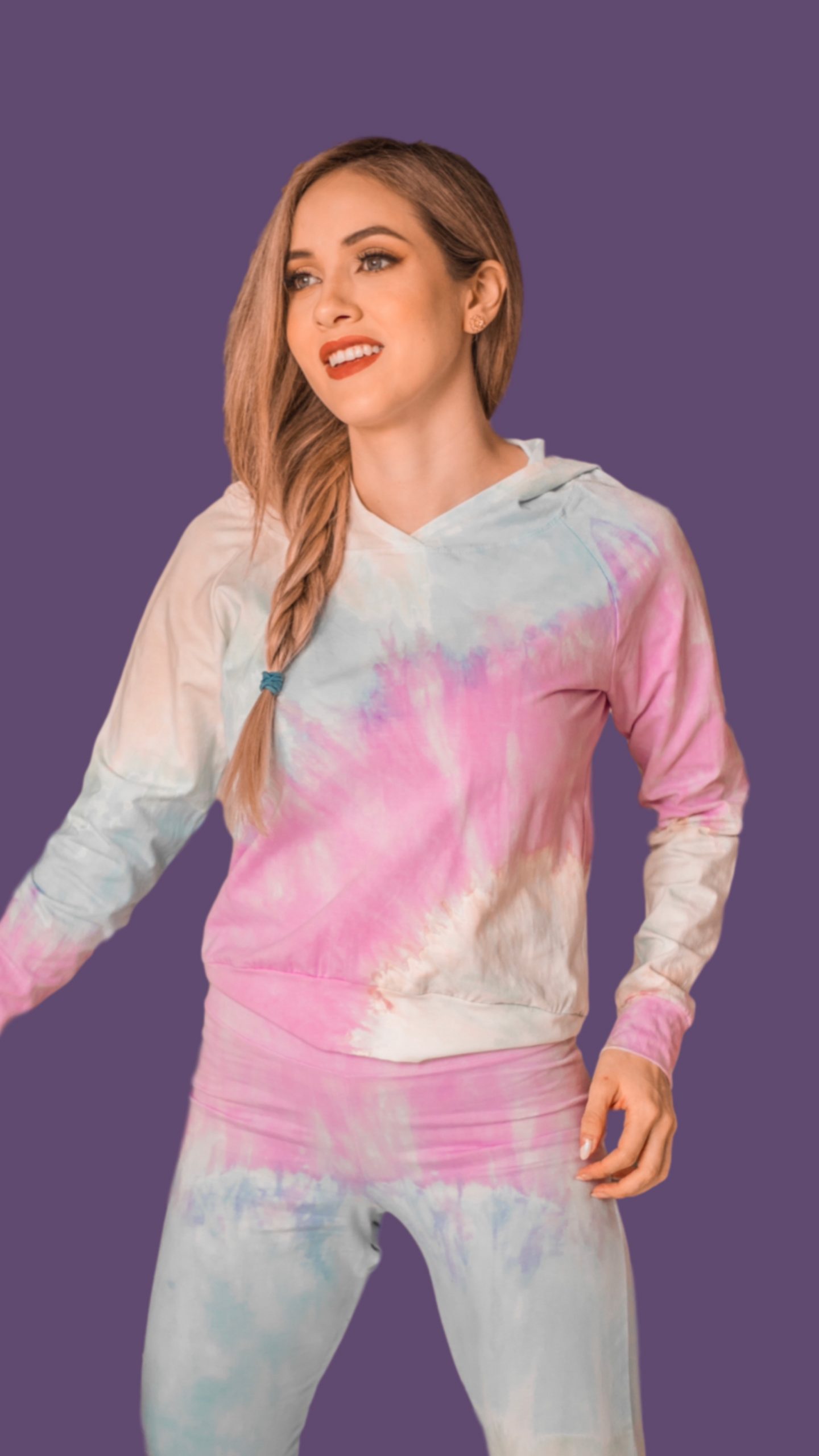 Set de hoodie y jogger de viscosa y spandex, con aplicación de técnica Tie Dye.