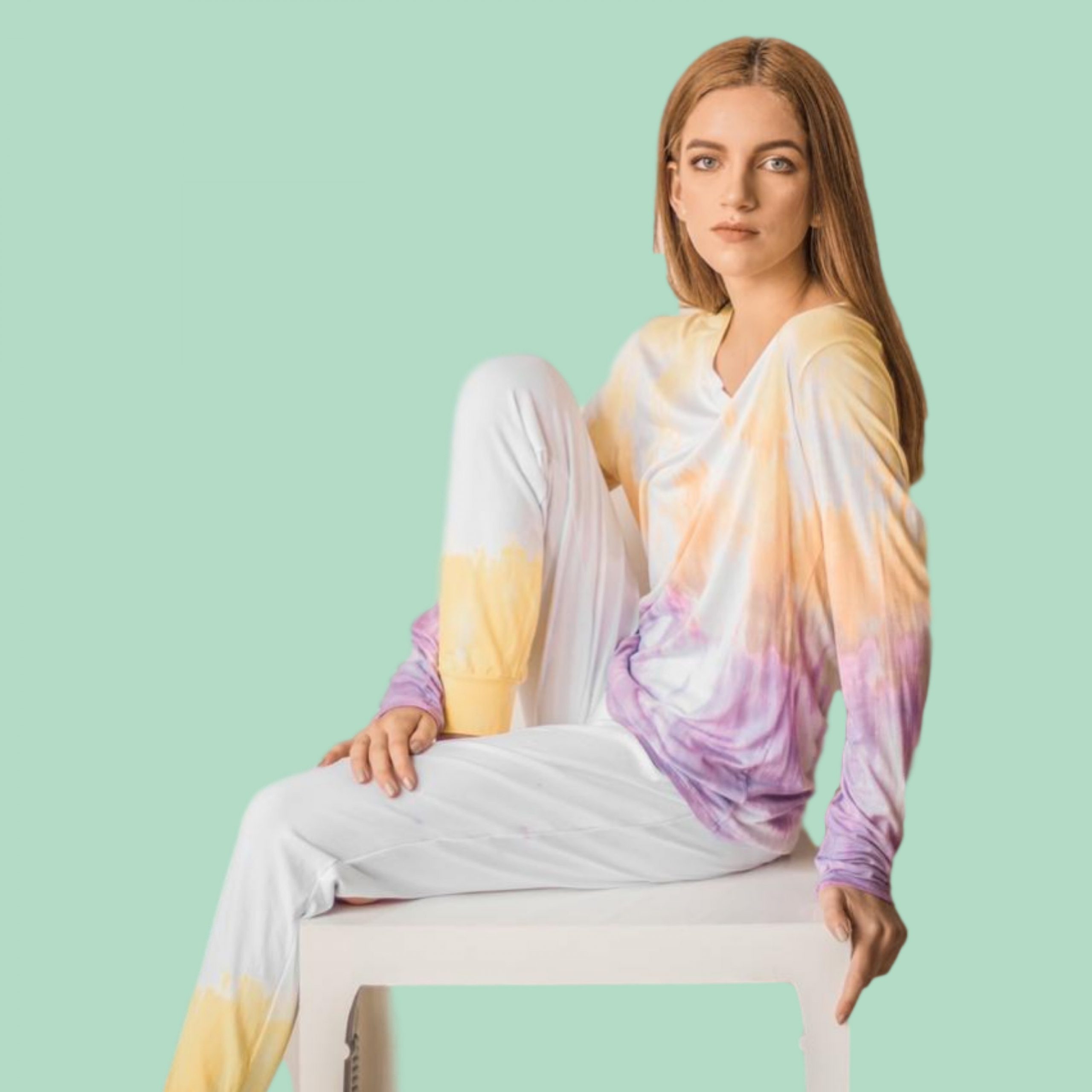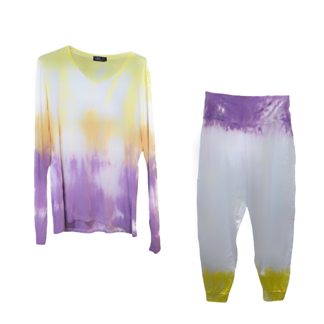 Set de Camiseta mangas largas y jogger de viscosa y spandex, aplicación de técnica Tie Dye.