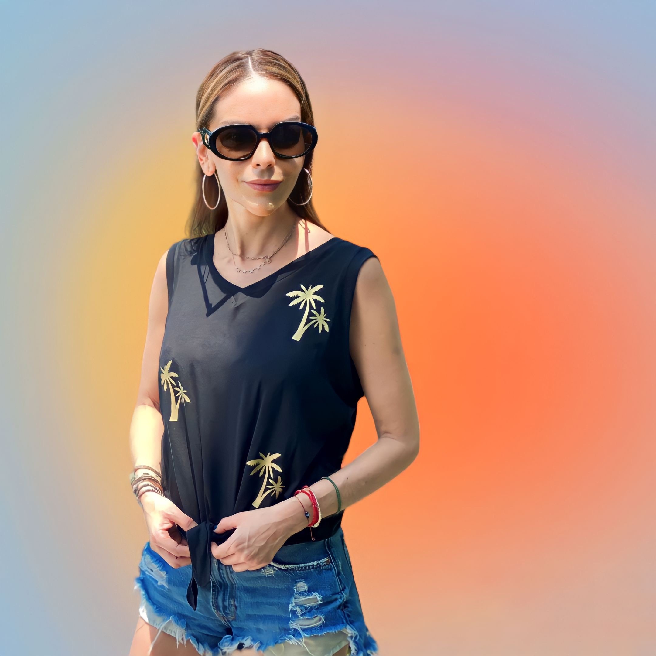 $25.00 Camiseta de viscosa y spandex, cuello en V, sin mangas y nudo en la cintura, con diseño de vinil textil. color Elige una opciónBerryLavandaPlumRojoVerdeAzulBlancoGrisMostazaNegroRayada gris y blancoRayada negro y blancoRosado Tallas Elige una opciónXSSMLXLXSSMLXLLimpiar MINI GOLD PALMS cantidad Añadir al carrito SKU: C-MAS-008 Categorías: Graphic T-Shirts, MAGIC SUMMER Productos relacionados SHADES OF BLUE/Graphic T-ShirtsMOON & FLOWERS $25.00 Seleccionar opciones Este producto tiene múltiples variantes. Las opciones se pueden elegir en la página de producto SHADES OF BLUE/Graphic T-ShirtsFORNASETTI IN BLACK $25.00 Seleccionar opciones Este producto tiene múltiples variantes. Las opciones se pueden elegir en la página de producto Graphic T-Shirts/SUN VIBESGLITTER PINK HEART $25.00 Seleccionar opciones Este producto tiene múltiples variantes. Las opciones se pueden elegir en la página de producto