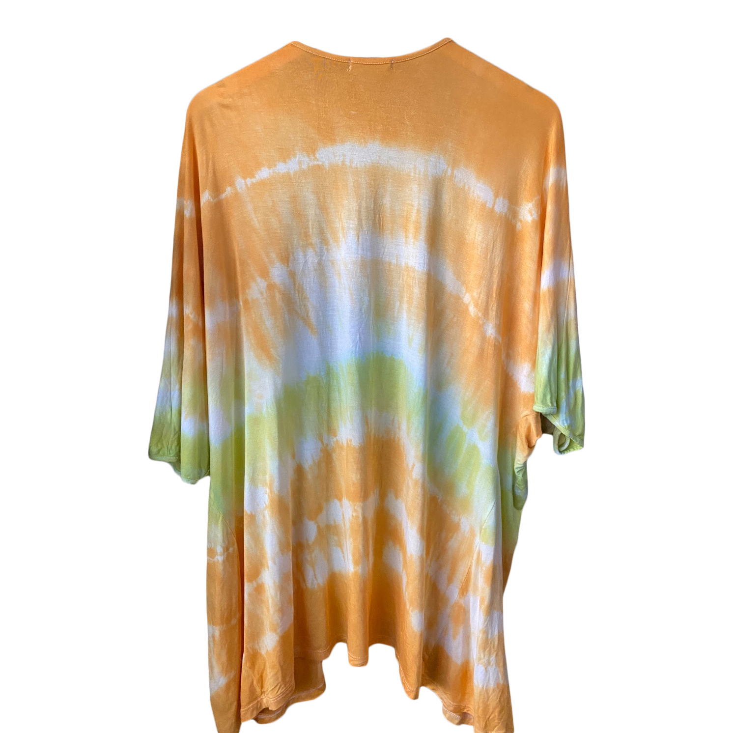 La técnica de TIE DYE se realiza a través de un proceso de tenidos y nudos, el mismo que se realiza completamente a mano por lo que ninguna camiseta será EXACTAMENTE igual a otra.