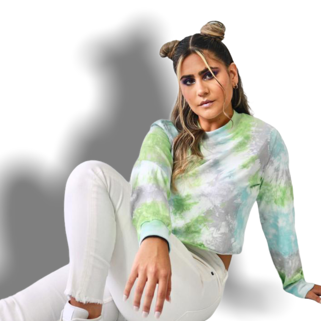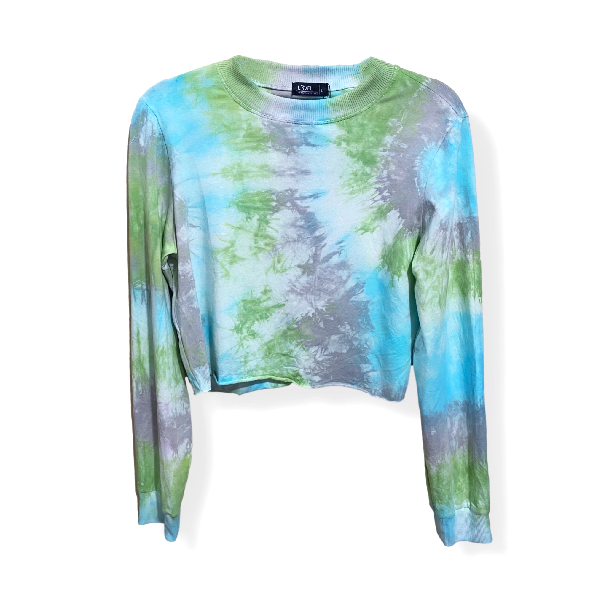 Sweater corto Oversize de algodón, con aplicación de técnica Tie Dye.