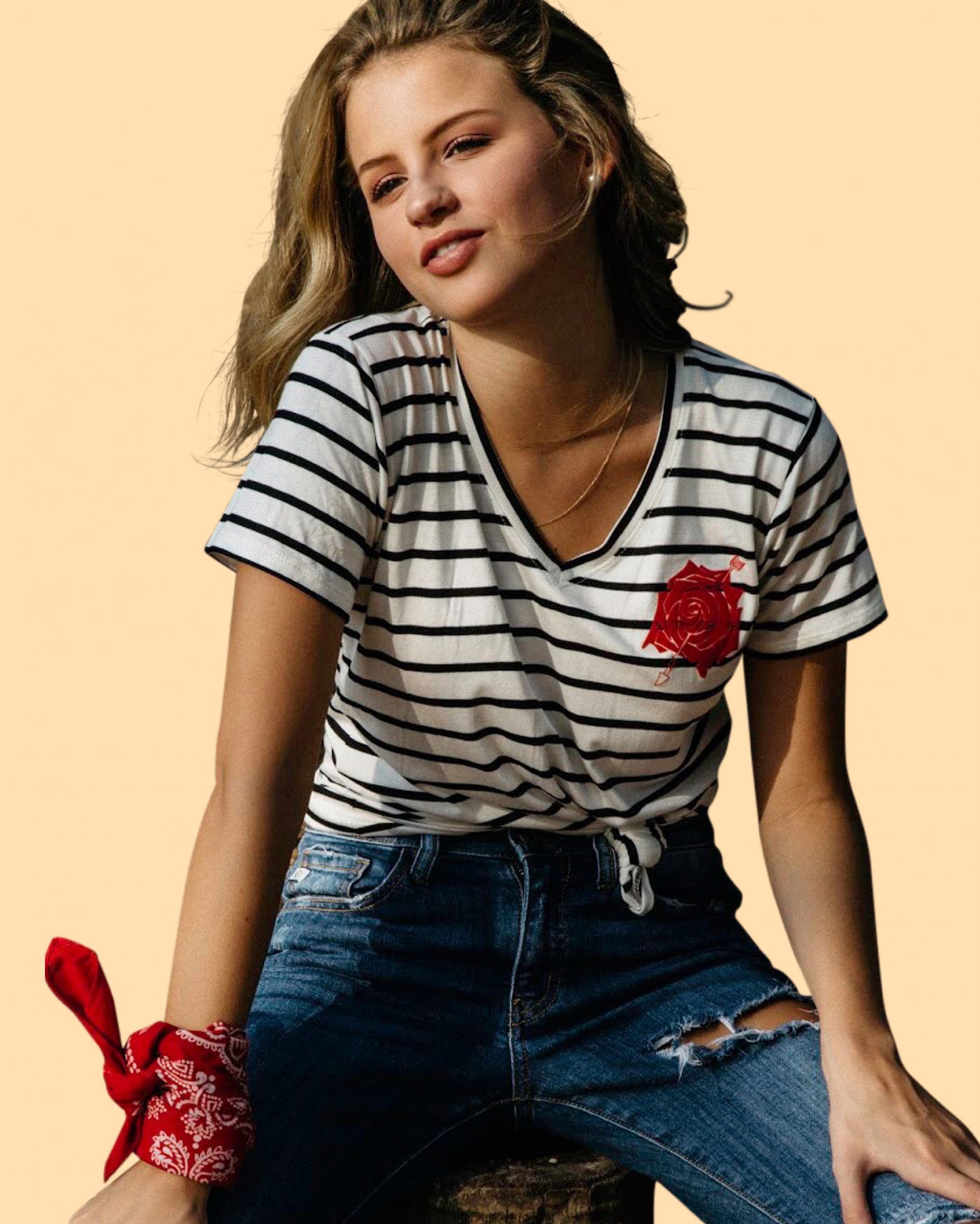$25.00 Camiseta de viscosa y spandex, manga corta, cuello en V y diseño de flor roja con flecha. Tallas Elige una opciónXSSMLXLXSSMLXL color Elige una opciónLavandaRojoVerdeAzulBlancoGrisMostazaNegroRayada negro y blancoRosadoLimpiar RED ROSE STRIPES cantidad Añadir al carrito SKU: C-TPN-007 Categorías: Graphic T-Shirts, THE PICNIC Productos relacionados Graphic T-Shirts/THE PICNICHAPPY FACE $25.00 Seleccionar opciones Este producto tiene múltiples variantes. Las opciones se pueden elegir en la página de producto STAY SIMPLE/Graphic T-ShirtsHELLO $25.00 Seleccionar opciones Este producto tiene múltiples variantes. Las opciones se pueden elegir en la página de producto Patches & Appliques/THE PICNICSTORKS EMBROIDERED $28.00 Seleccionar opciones Este producto tiene múltiples variantes. Las opciones se pueden elegir en la página de producto
