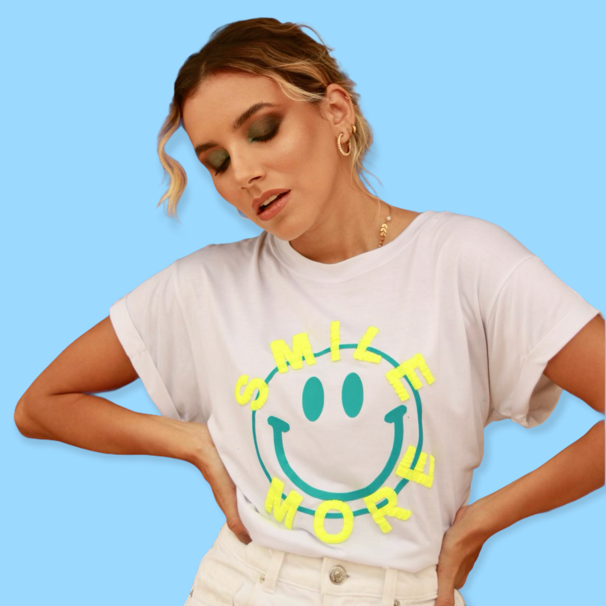 $25.00 Camiseta de viscosa y spandex con cuello redondo y mangas remangadas con diseno de vinil textil. color Elige una opciónLavandaRojoVerdeAzulBlancoGrisMostazaNegroRosado Tallas Elige una opciónXSSMLXLXSSMLXLLimpiar SMILE MORE cantidad Añadir al carrito SKU: C-TRS-003 Categorías: Graphic T-Shirts, TRENDY STREET Productos relacionados BEST OLDIES/Graphic T-ShirtsRAINBOW STRIPES $25.00 Seleccionar opciones Este producto tiene múltiples variantes. Las opciones se pueden elegir en la página de producto HINT OF VINTAGE/Graphic T-ShirtsATARI $25.00 Seleccionar opciones Este producto tiene múltiples variantes. Las opciones se pueden elegir en la página de producto Graphic T-Shirts/INTO THE WILDPEACE LIGHTING BOLT $28.00 Seleccionar opciones Este producto tiene múltiples variantes. Las opciones se pueden elegir en la página de producto