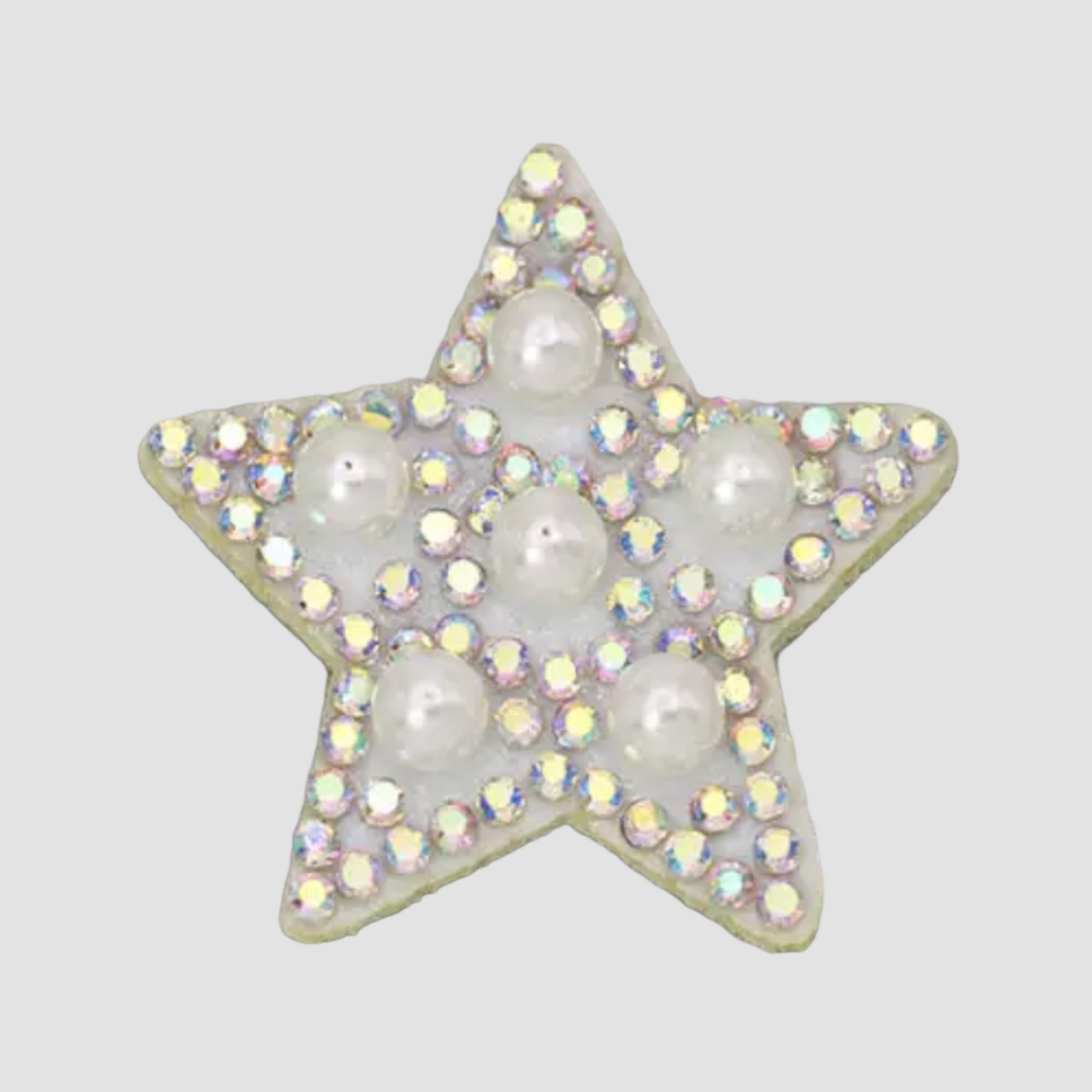 Camiseta de viscosa y spandex con cuello redondo y nudo en ambas mangas con apliques de estrellas de perlas y brillos.