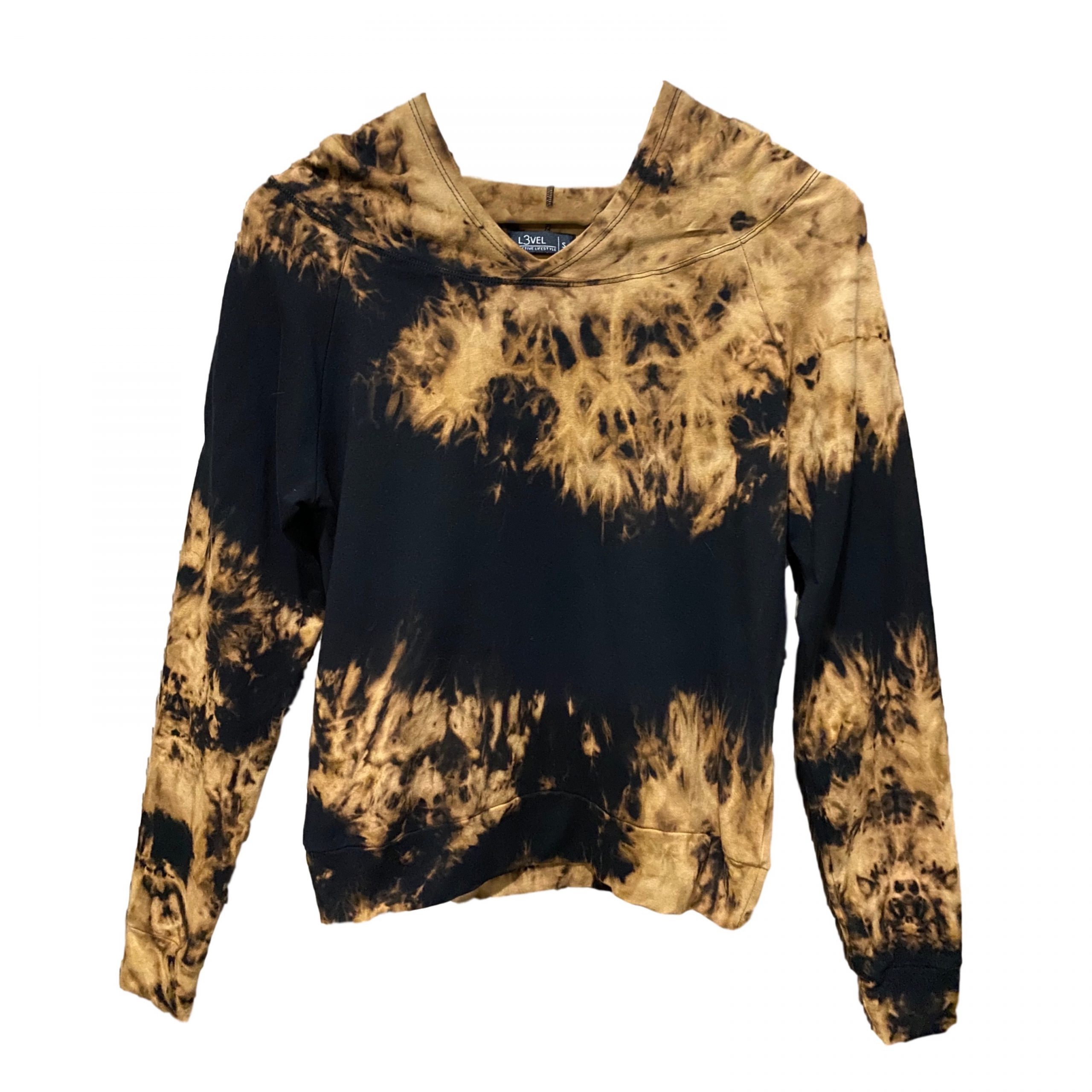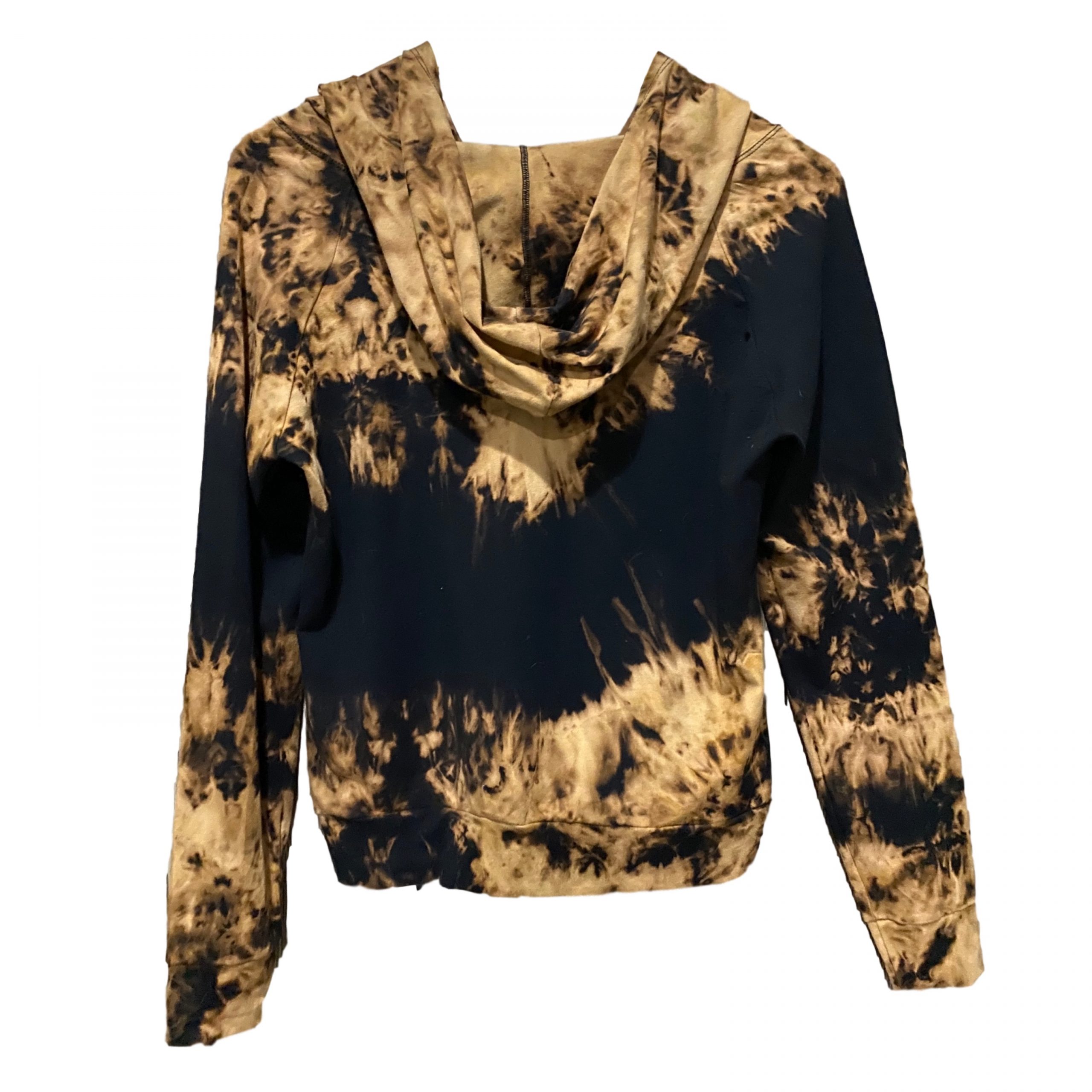 Hoodie de algodón con aplicación de técnica Tie Dye sobre negro.