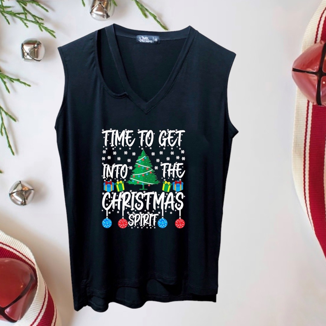 Camiseta de viscosa y spandex, sin mangas y cuello en V,  con diseño de vinil textil.