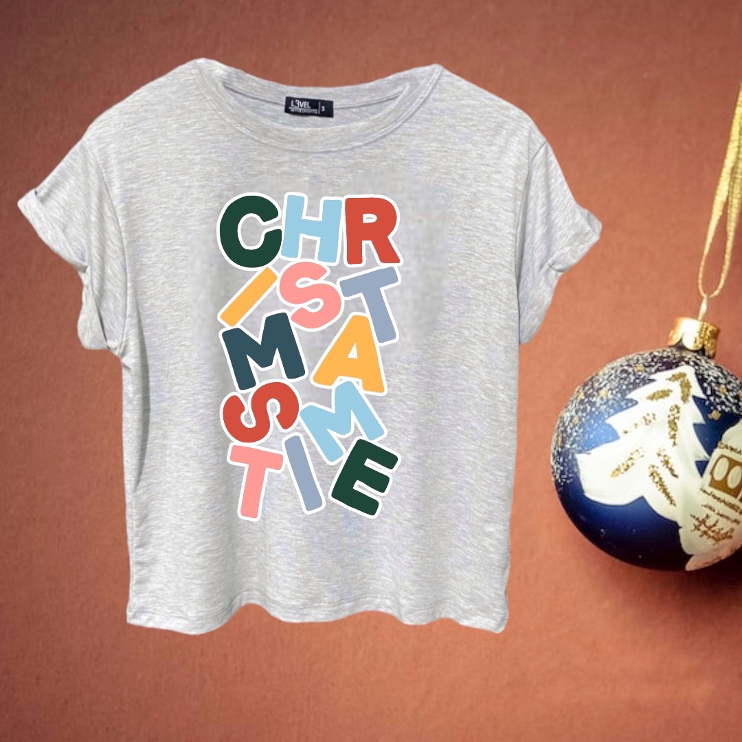 Camiseta de viscosa y spandex, con mangas, cuello redondo  con diseño de vinil textil.